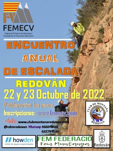 El encuentro anual de escalada es una actividad que forma parte del calendario federativo de la FEMECV, que este año organiza el Club de Muntanya Redován, con la colaboración del Ayuntamiento de Redován.