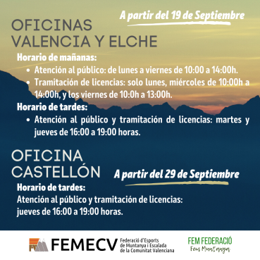 Aunque las licencias federativas son anuales (del 1 de enero al 31 de diciembre), la FEMECV ofrece una licencia solo para los meses de octubre, noviembre y diciembre.