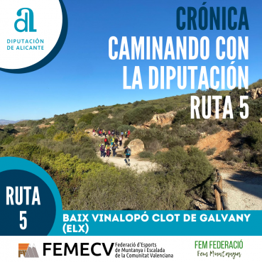 Continúa el programa de senderismo de la Diputación de Alicante y la Federació d’Esports de Muntanya i Escalada de la Comunitat Valenciana; en esta ocasión visitando la comarca del Comtat, donde esta ruta se localizó en pleno corazón del paisaje protegido de las sierras del Maigmo y del Cid, donde los participantes disfrutaron de una agradable caminata por el envidiable entorno medioambiental de la zona.