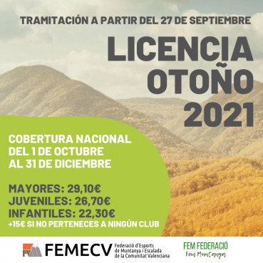 Las licencias federativas son anuales, desde el 1 de enero al 31 de diciembre. Con esta modalidad, se puede adquirir la licencia para los meses de octubre, noviembre y diciembre.